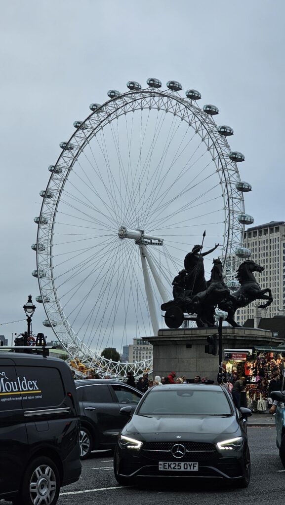 Am Rückweg zur Victoria Station schauen wir noch beim London Eye am anderen Themseufer vorbei…