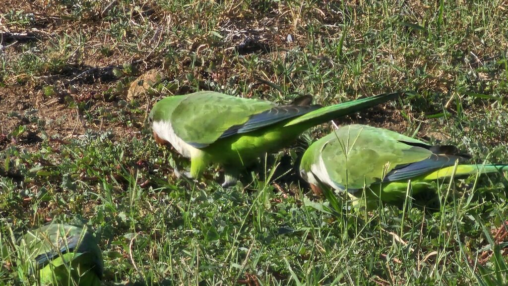 Rund um die Burg fallen uns die vielen Papageien auf – so grün wie das Gras, auf dem sie sich in Scharen aufhalten!