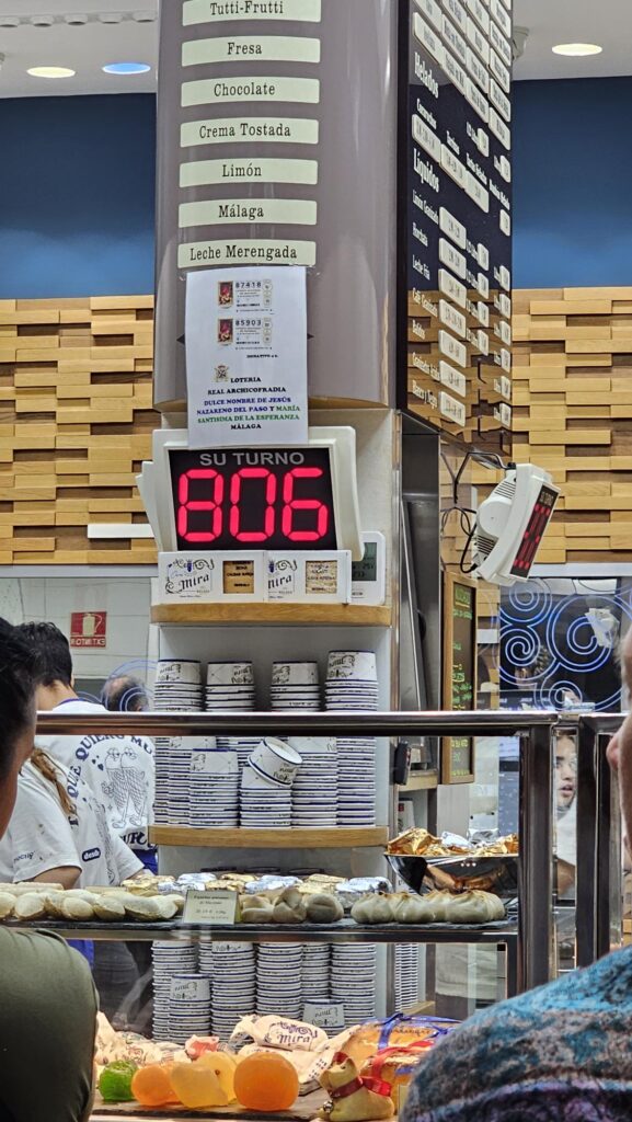 Nach den abendlichen Tapas wollten wir noch ein Eis – so eine Eisdiele haben wir alle noch nicht gesehen! Nummernausgabe inclusive und 80 Nummern vor uns!